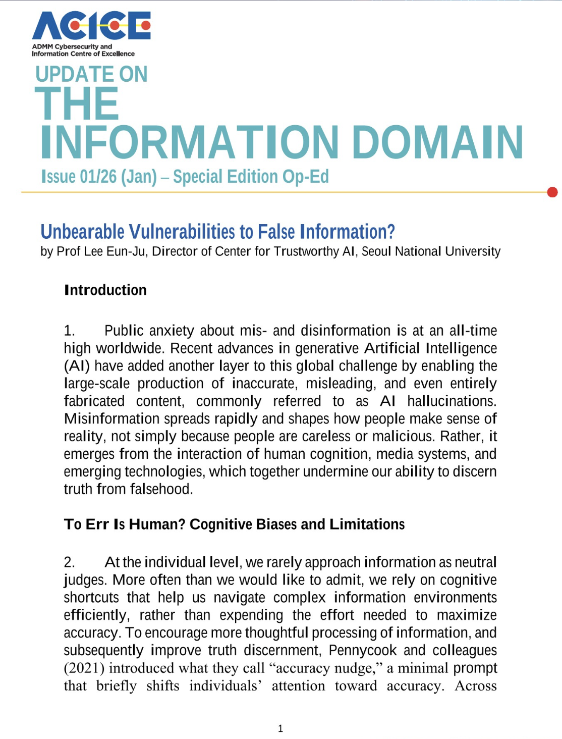 [싱가포르 ACICE] ACICE Information Report Special Edition Op-Ed (이은주 교수 기고)